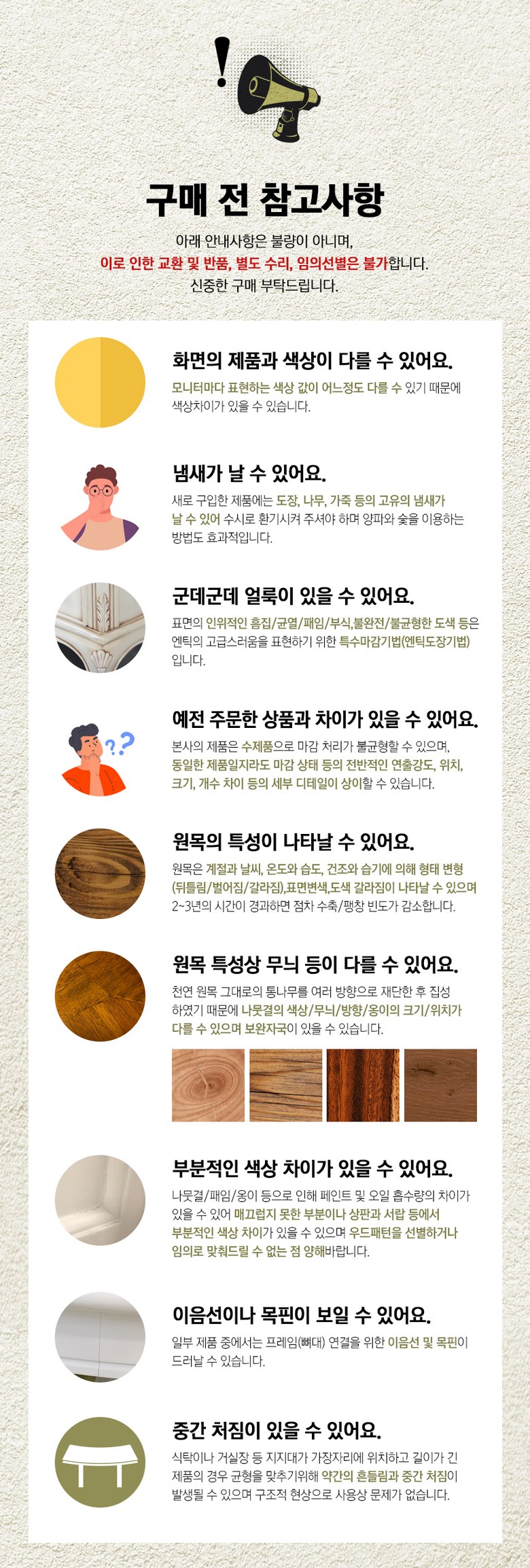 - ㆍ모니터 해상도의 차이로 인해 색상이나 이미지가 실제와 달라, 고객이 단순 변심으로 교환/반품을 무료로 요청하는 경우