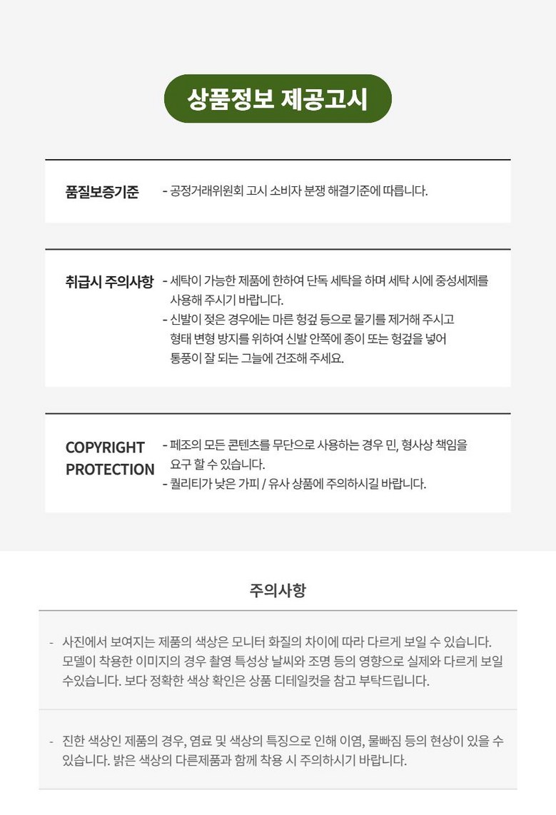 - ㆍ모니터 해상도의 차이로 인해 색상이나 이미지가 실제와 달라, 고객이 단순 변심으로 교환/반품을 무료로 요청하는 경우