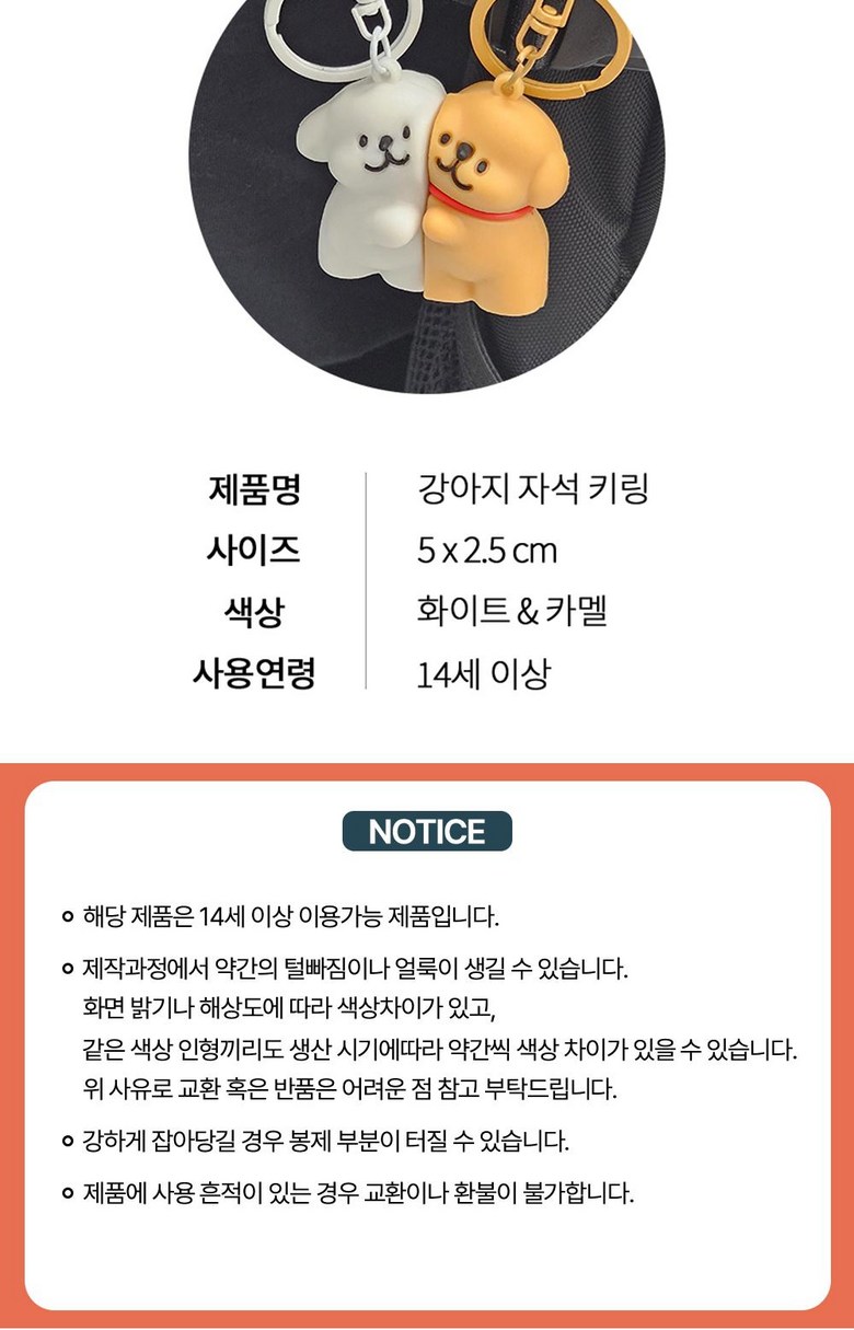 | 품명 및 모델명 | 강아지 자석 커플 키링 | 인증/허가 사항 | 상품 상세페이지 참조 |