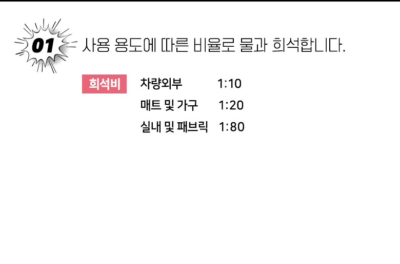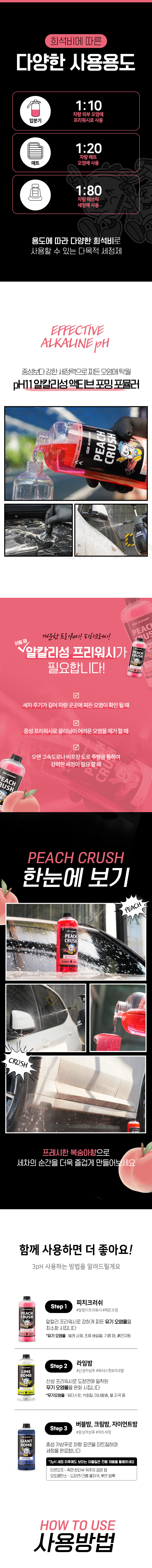 | 품목 및 제품명 | 세정제 / 피치크러시 | 용도(표백제의 경우 계열을 함께표시) 및 제형 | 자동차용-실내용,자동차용-외부용 / 분사형-분무기형,비분사형-액체형 |