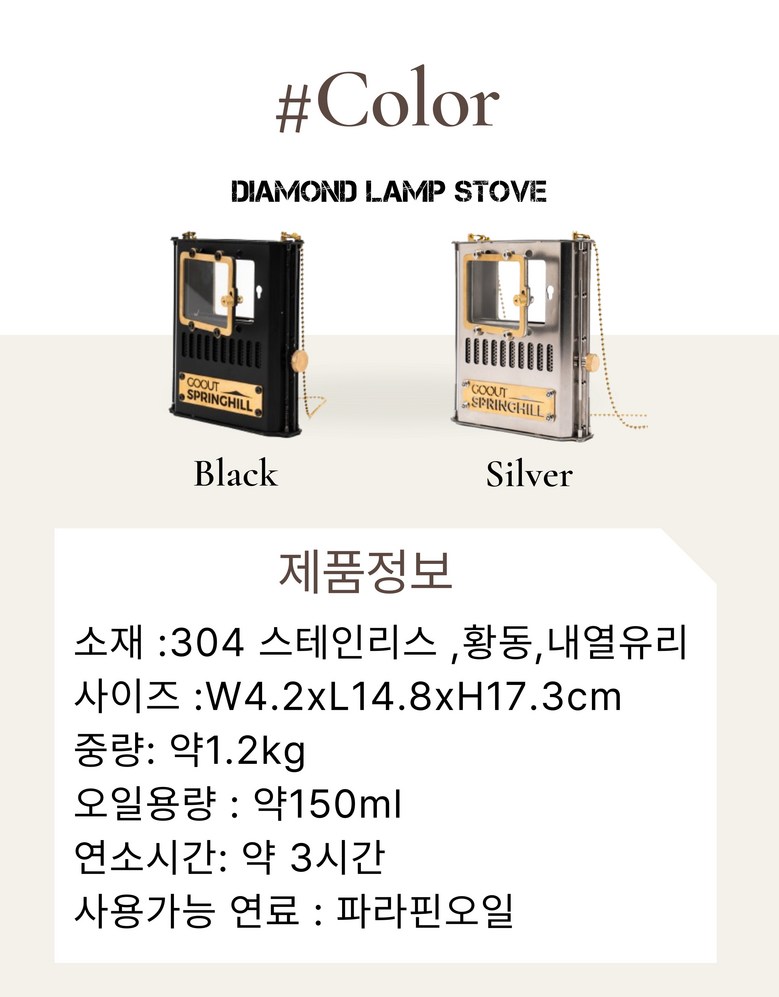| 품명 및 모델명 | 다이아몬드 램프 스토브 | KC 인증정보 | 해당없음 |