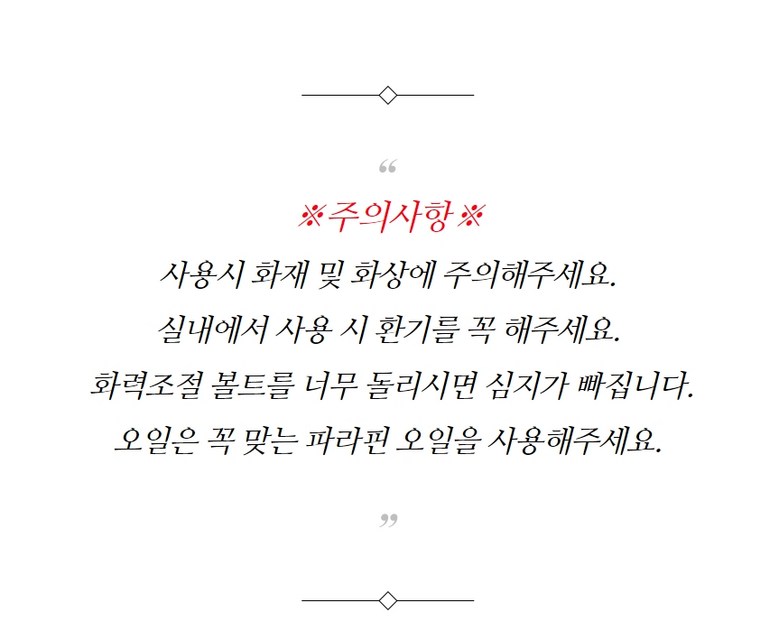 | 재질 | 304스테인레스,황동 | 제품 구성 | 파우치,오일통,거치대,심지 |
