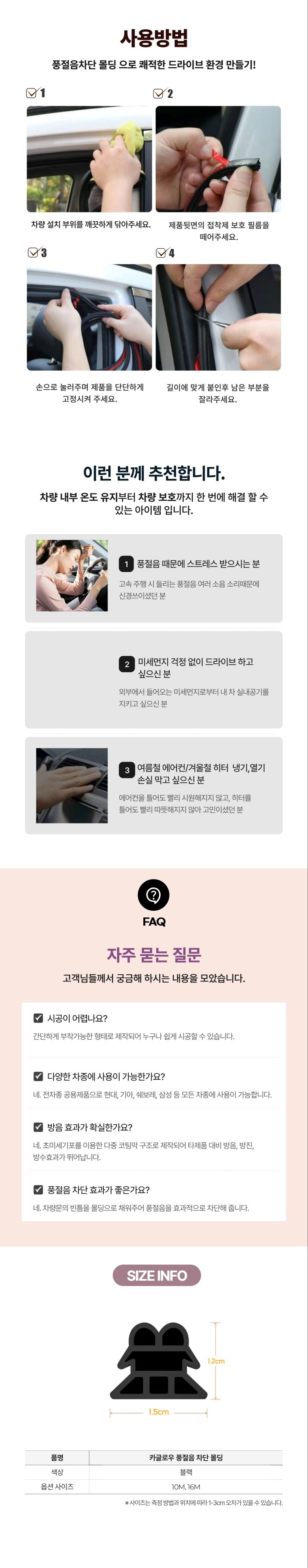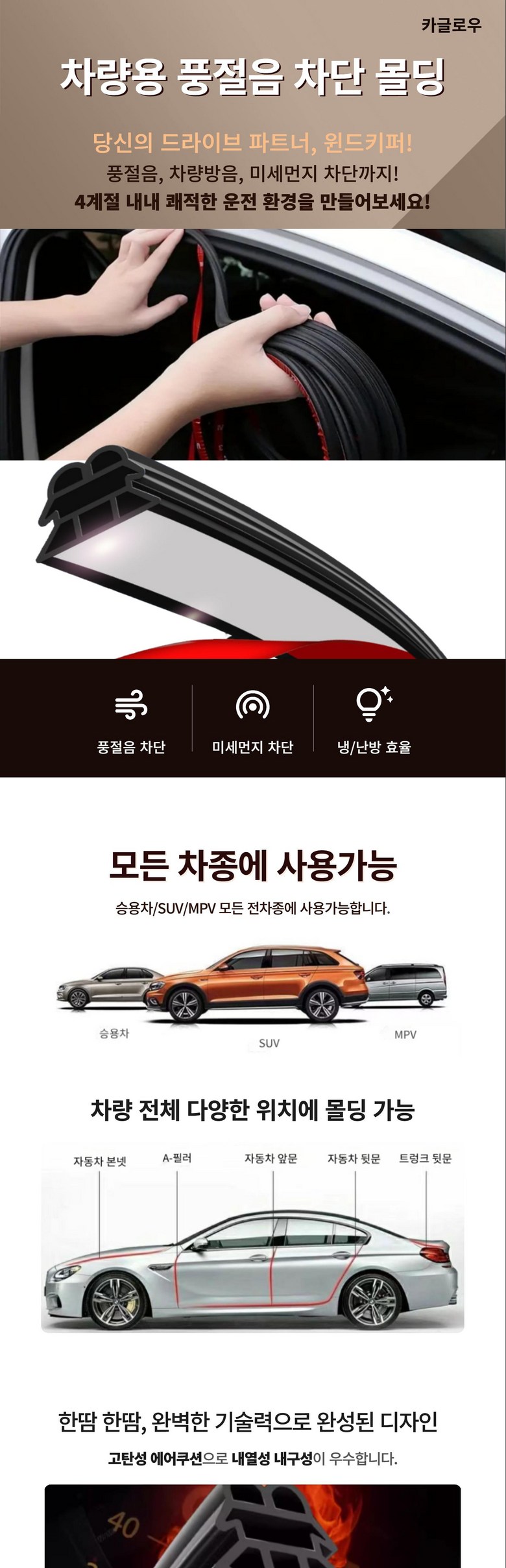 | 품명 및 모델명 | 카글로우 자동차 풍절음 차단 도어 방음재 차량 고무 몰딩 | 인증/허가 사항 | 상품 상세페이지 참조 |