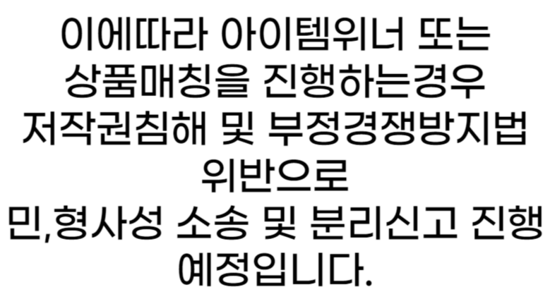 판매 부적격 상품 또는 허위과장광고 및 지식재산권을 침해하는 상품의 경우 신고하여 주시기 바랍니다.