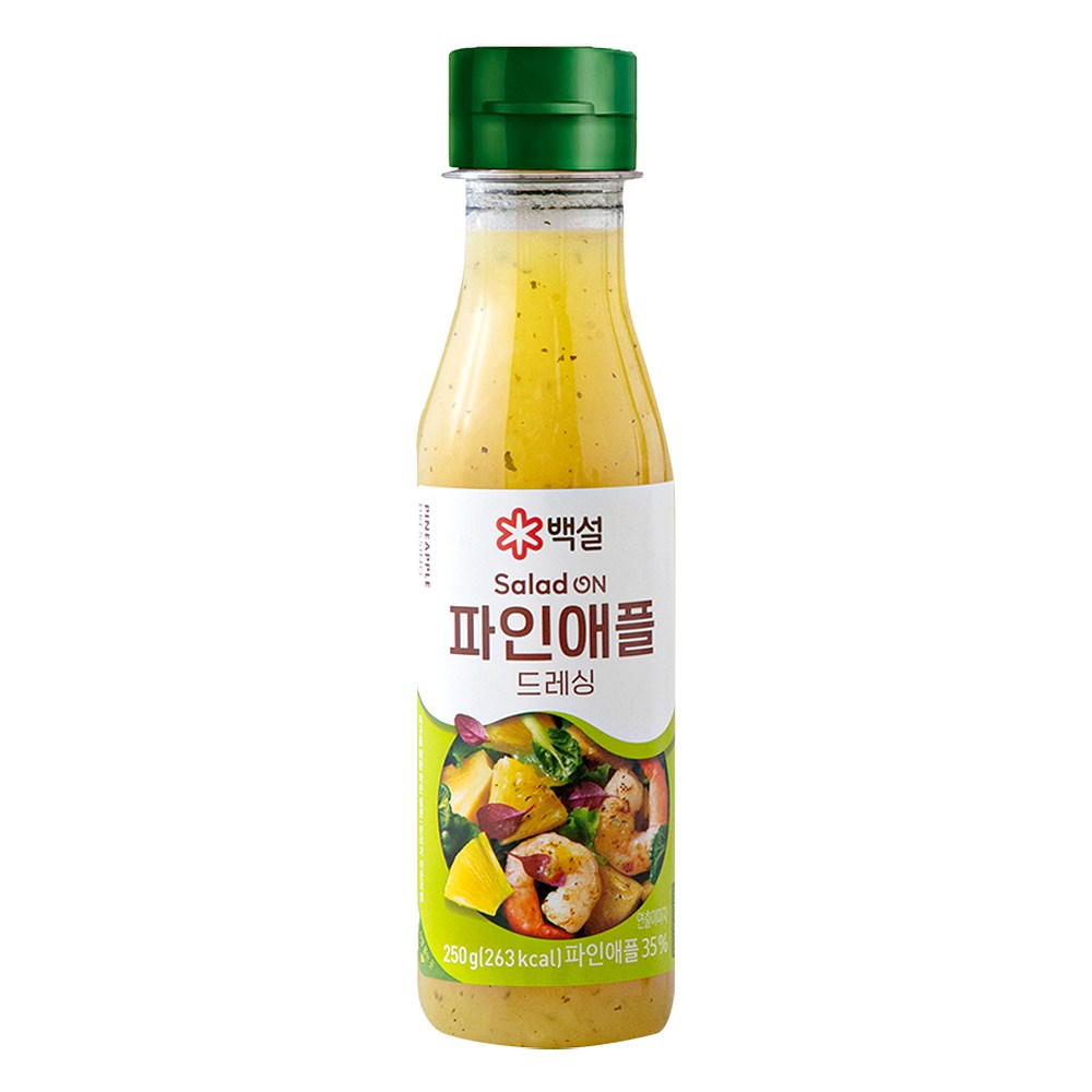 드레싱은 샐러드의 풍미를 더욱 깊게 해주죠. 샐러드에 싱그러움을 더할 수 있는 파인애플 드레싱을 소개할게요. 파인애플 청크 본연의 맛과 향에 레몬농축액, 라임농축액 등으로 상큼함을 강조했답니다. 새콤하고 달콤한 파인애플 드레싱으로 한층 산뜻한 샐러드를 즐겨보세요.