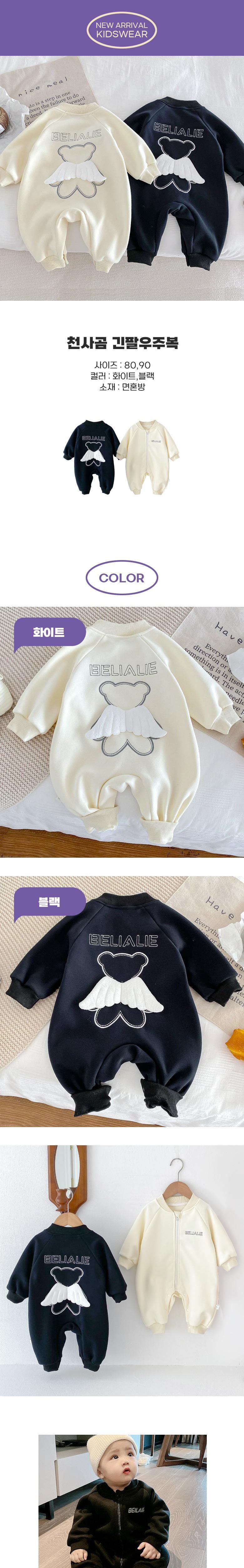 몽실이 천사곰 긴팔우주복 유아용 아기 외출복 돌선물 백일선물