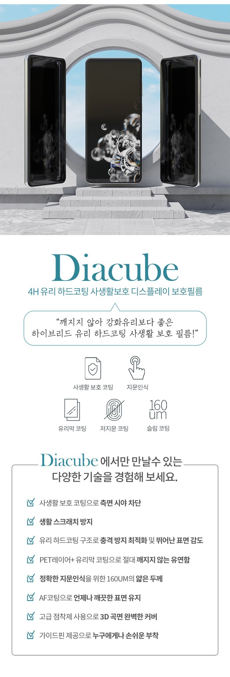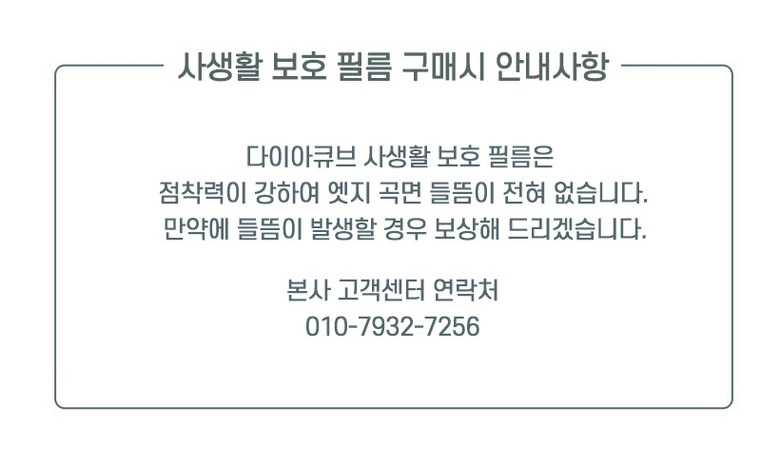 | 품명 및 모델명 | 다이아큐브 사생활보호 프라이버시 곡면 풀커버 지문인식 액정보호필름 2매 | 인증/허가 사항 | 본품:해당없음 , 알콜솜:HB20-02-0189 |
