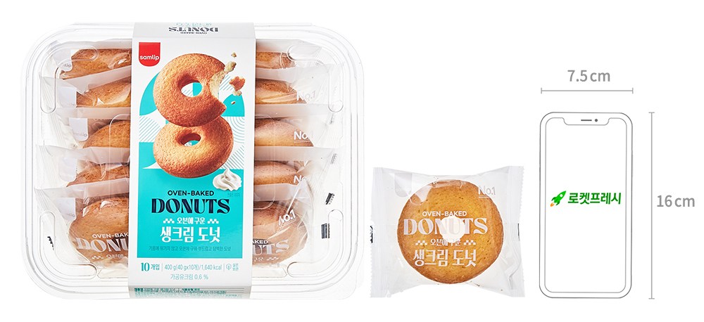 식감도 풍미도 부드러운 오븐에 구운 도넛이에요. 겉은 살짝 바삭하고, 입에 넣어보면 촉촉하게 녹아들며 진한 여운을 선사하지요. 고소하면서도 달달한 맛이 좋아 자꾸 손이 간답니다. 쌉싸름한 커피를 곁들여 드시거나, 우유에 폭 담가 드셔보세요. 하나씩 낱개 포장되어 있어 간편하게 드실 수 있답니다.