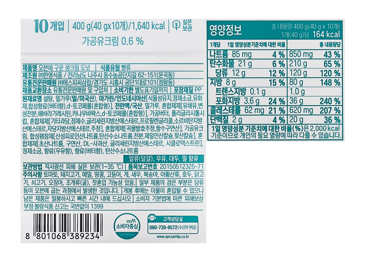 | 포장단위별 내용물의 용량(중량), 수량 | 400g x 2개 | 원재료명 및 함량 | 컨텐츠 참조 |