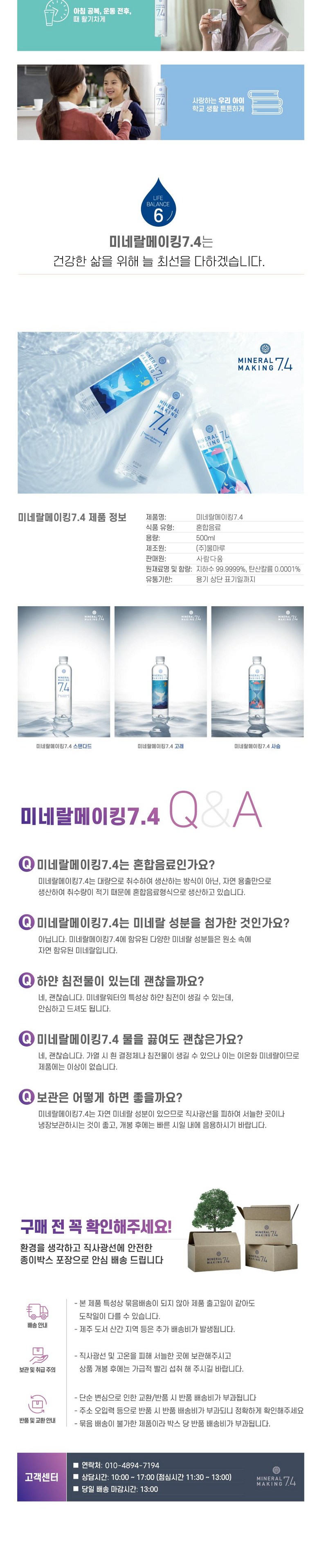 | 생산자 및 소재지 | 미네랄메이킹 7.4 / 광주광역시 서구 월드컵4강로112번길 7 | 제조연월일, 소비기한 또는 품질유지기한 | 상품 상세페이지 참조 |