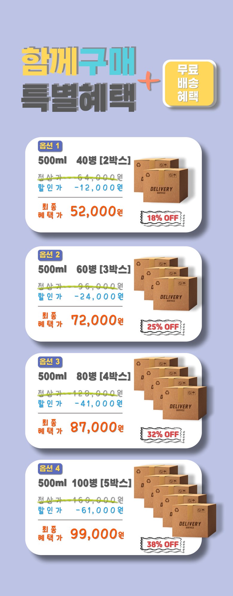 | 배송방법 | 순차배송 | 배송비 | 무료배송 - 도서산간 지역 배송불가 |