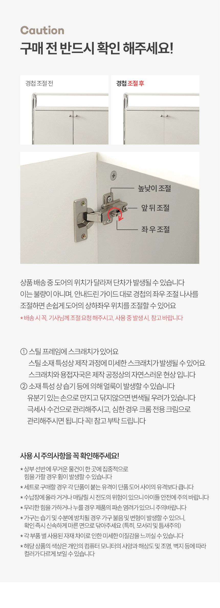 ※ 리뉴얼 진행중인 상품으로 수납장 내부 조립 방식이 상이한 동일 상품을 수령하실 수 있습니다.