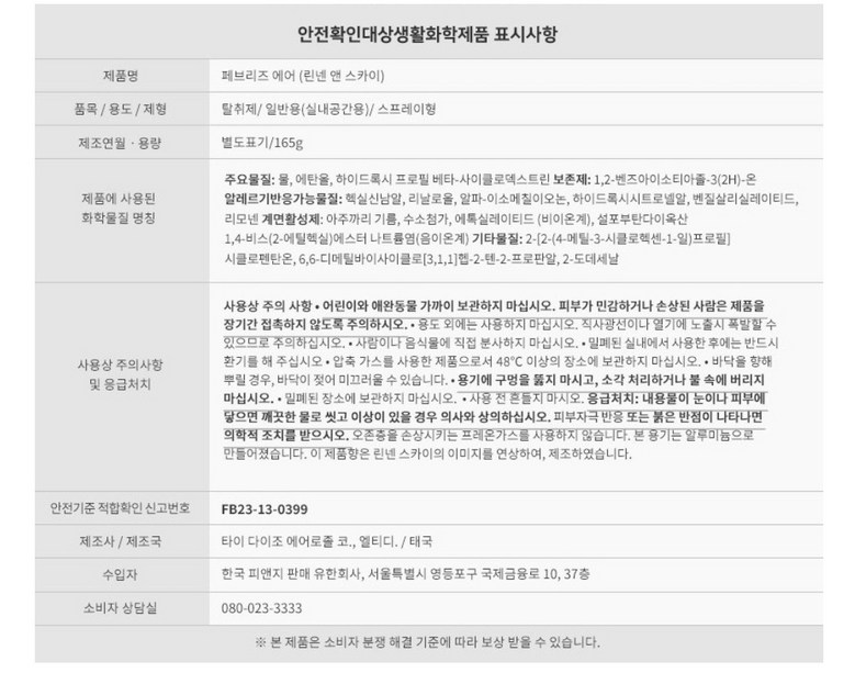 | 품목 및 제품명 | 상품 상세페이지 참조 | 용도(표백제의 경우 계열을 함께표시) 및 제형 | 상품 상세페이지 참조 |