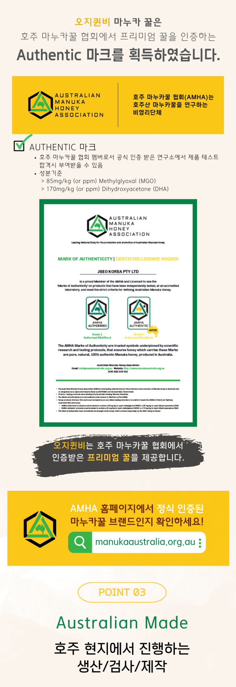 | 생산자 및 소재지 | 생산자:JSEO KOREA PTY.LTD. AUSTRALIA/ 수입자: 주식회사 오지퀸비 | 제조연월일, 소비기한 또는 품질유지기한 | 소비기한(또는 유통기한) : 2029년 11월 05일 이거나 그 이후인 상품<br />제조년월일 : 2024년 11월 07일 이후인 제조상품 |