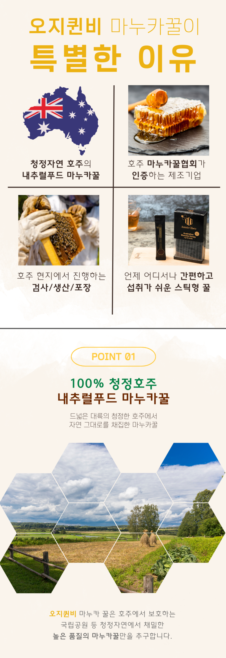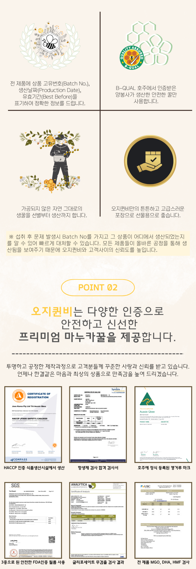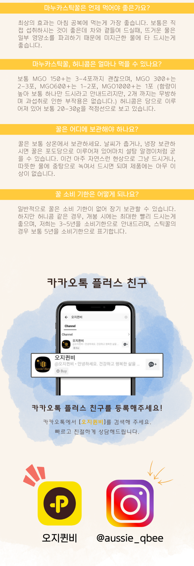 | 제품명 | 오지퀸비 마누카꿀 MGO 600+300 선물세트 | 식품의 유형 | 벌꿀 (주민원:마누카꿀 100%) |