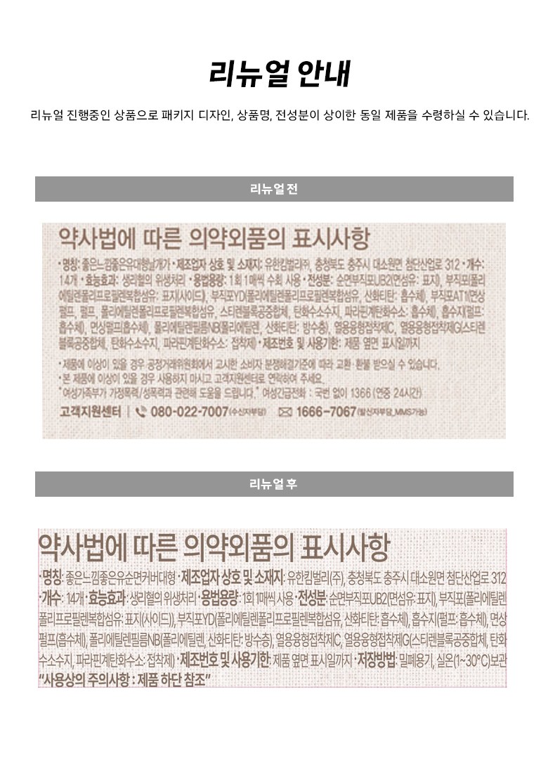 | 제조국(원산지) | 한국 | 제조자(수입자) | 유한킴벌리(주) |