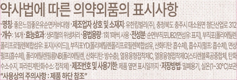 | 품명 및 모델명 | 좋은느낌좋은유순면커버대형 | 인증/허가 사항 | 의약외품 |