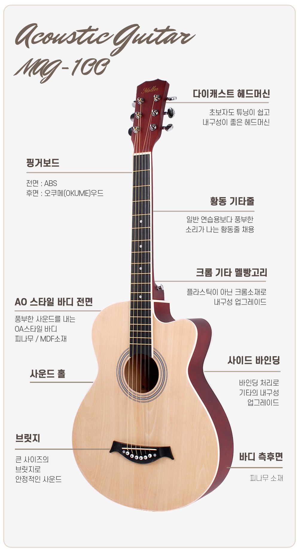 | 품명 및 모델명 | 리뉴얼전: 입문용 통기타 MAG-50 | 리뉴얼후: 입문용 통기타 MAG-100 | 크기 | 컨텐츠 참조 |