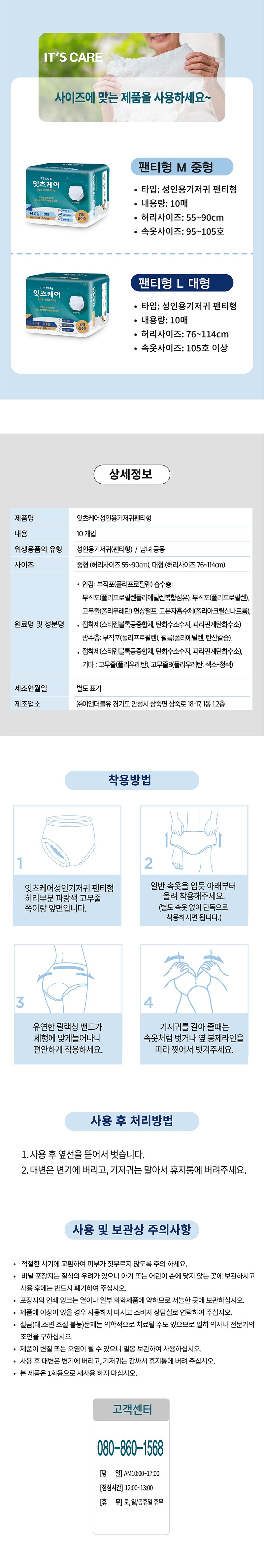 - 성인기저귀/패드 타입: 팬티형