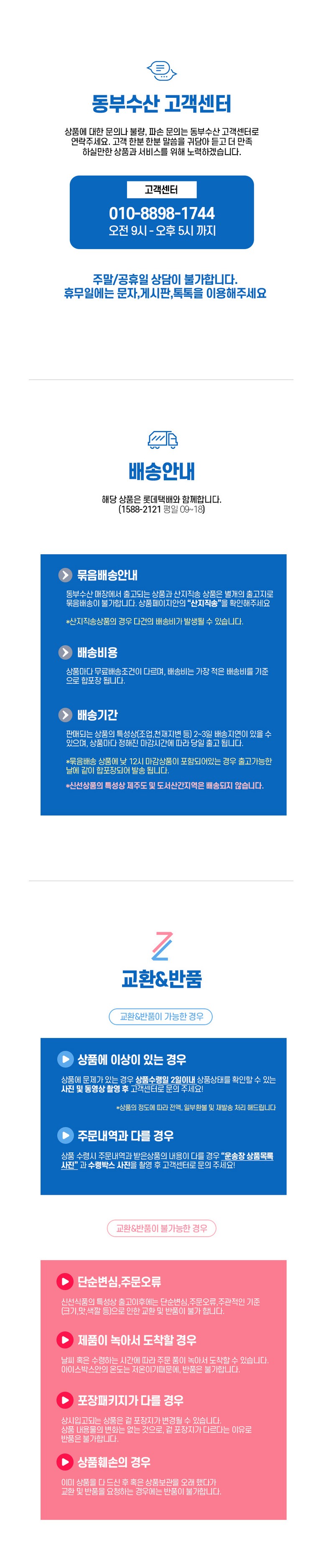 | 배송방법 | 신선/냉장/냉동 | 배송비 | 무료배송 - 도서산간 지역 배송불가 |