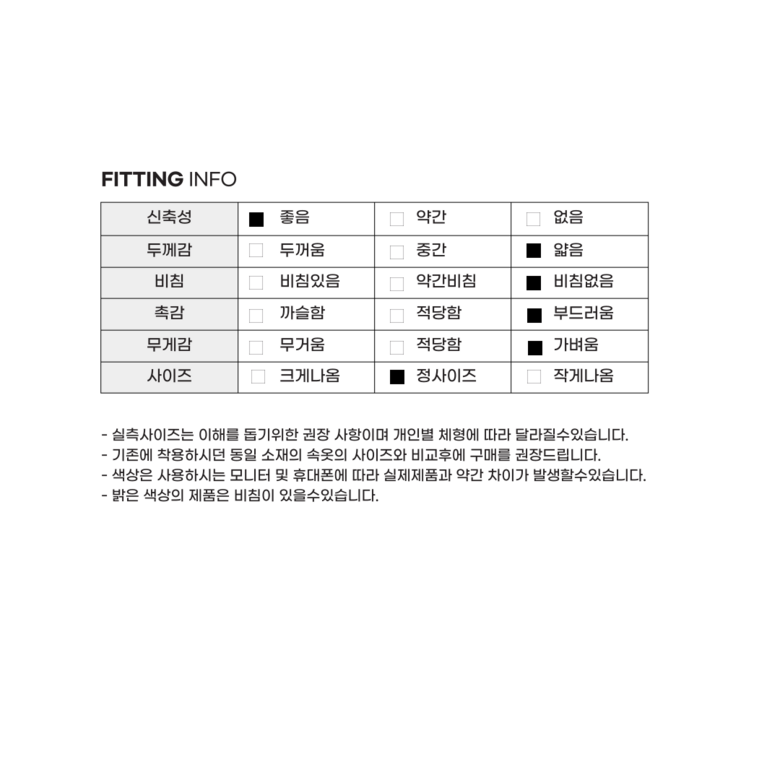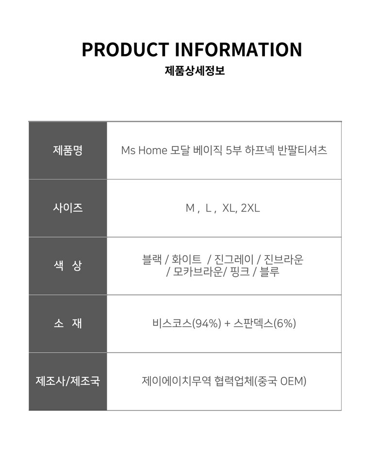 | 제품 소재 | 모달(비스코스) 94%+스판덱스 6% | 색상 | 상품 상세페이지 참조 |