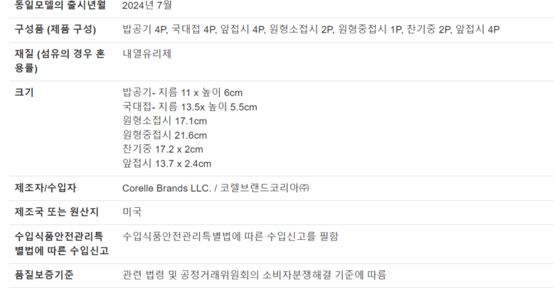 | 제조연월일, 소비기한 또는 품질유지기한 | 상품 상세페이지 참조 | 세부 품목군별 표시사항 | 상품 상세페이지 참조 |