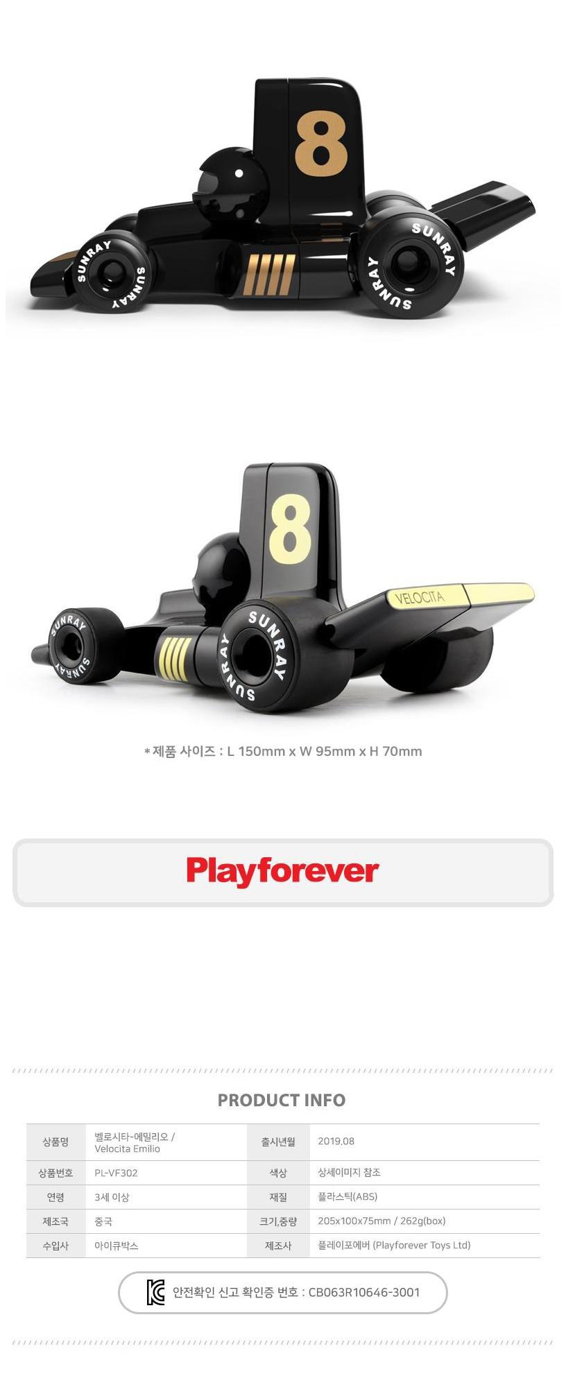 | 품명 및 모델명 | 플레이포에버 벨로시타-에밀리오(PL-VF302) | KC 인증정보 | CB063R10646-3001 |