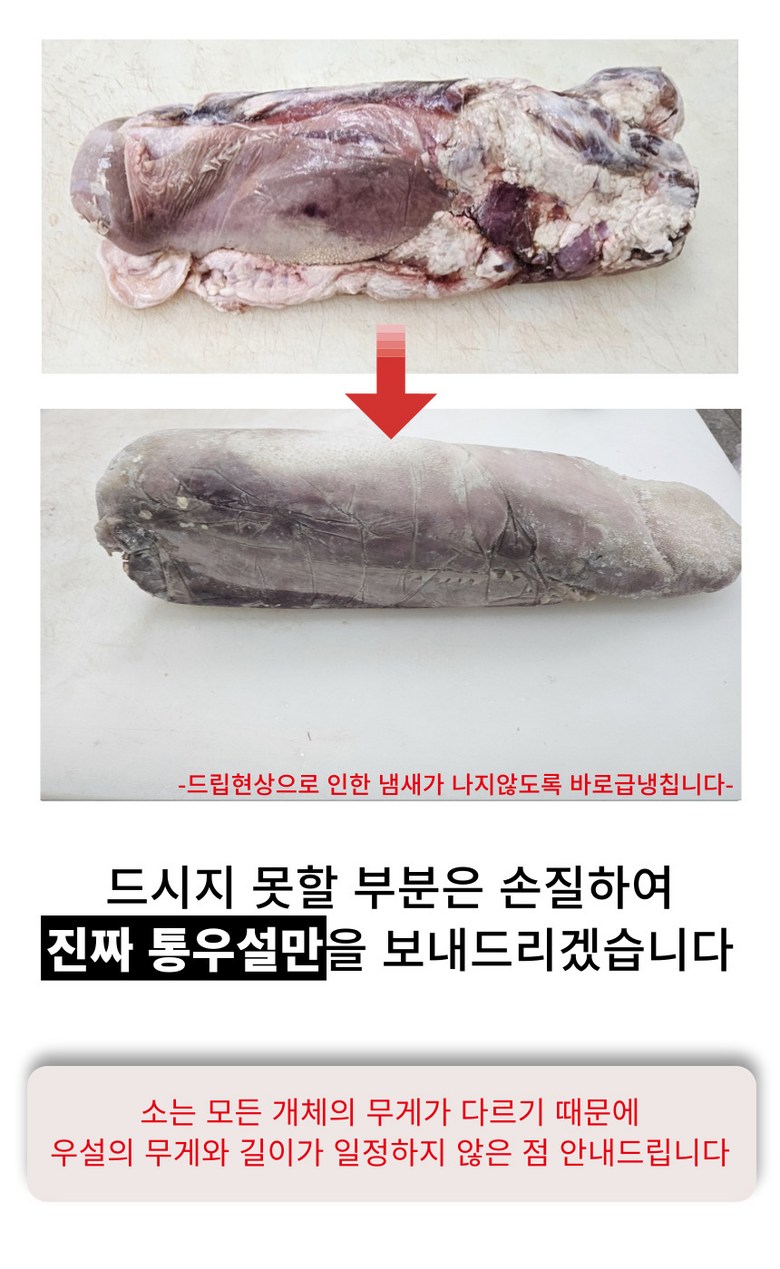 우설은 소의 생체 중량에 따라 무게가 다를수 있음을 안내 드립니다.