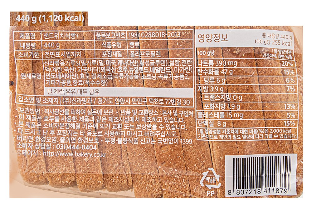 담백하고 부드러운 샌드위치 식빵이에요. 그대로 한 입 먹어보면, 고소한 풍미가 입안을 맴돌죠. 이름 그대로 샌드위치를 만들기에 알맞은 크기와 두께랍니다. 식빵으로 프렌치토스트를 만들까, 학교 앞에서 팔던 토스트처럼 만드는 건 어떨까? 상상의 나래를 펼치게 되죠.