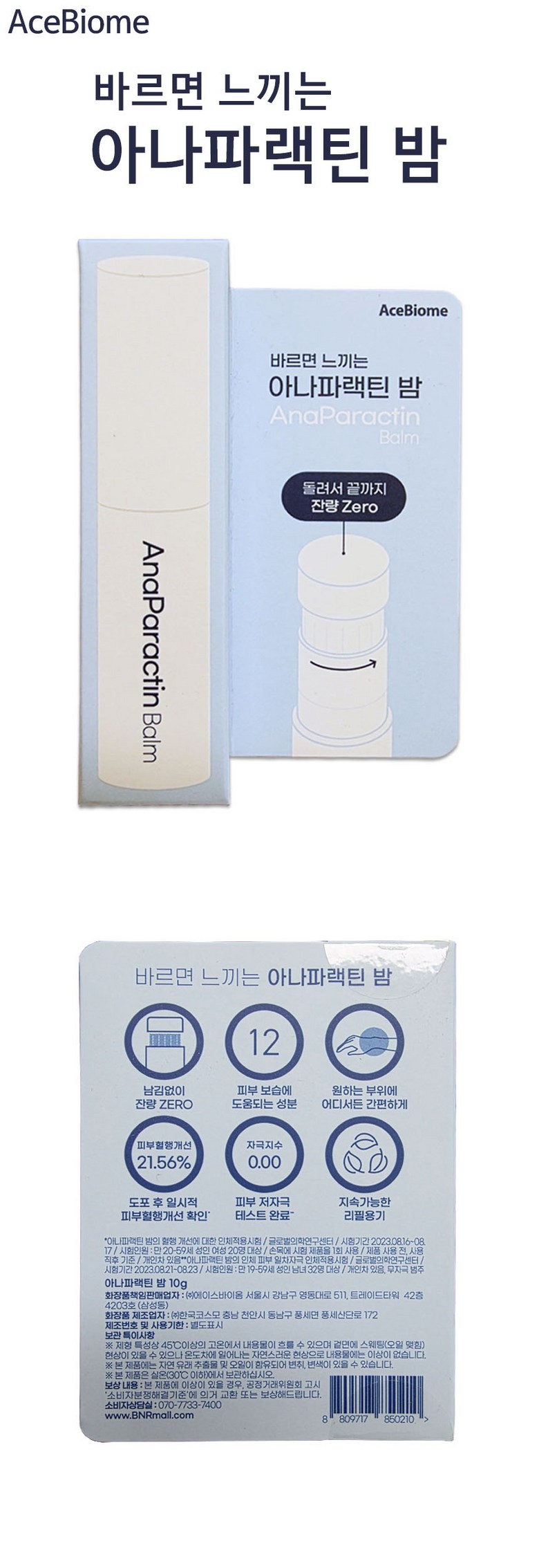 | 사용기한 또는 개봉 후 사용기간 | 제조일로부터 24개월 | 사용방법 | 캡을 연 후, 용기 하단의 핸들을 돌려 내용물을 적당량 꺼낸 뒤 필요한 부위에 부드럽게 발라줍니다. |