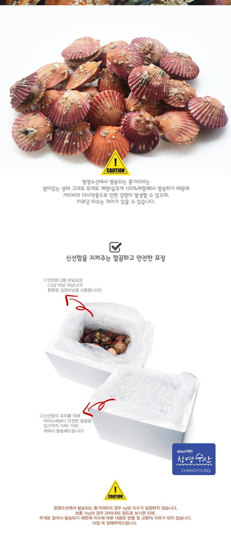 | 품목 또는 명칭 | 고성 홍가리비 | 포장단위별 내용물의 용량(중량),수량,크기 | 1kg 단위판매 |