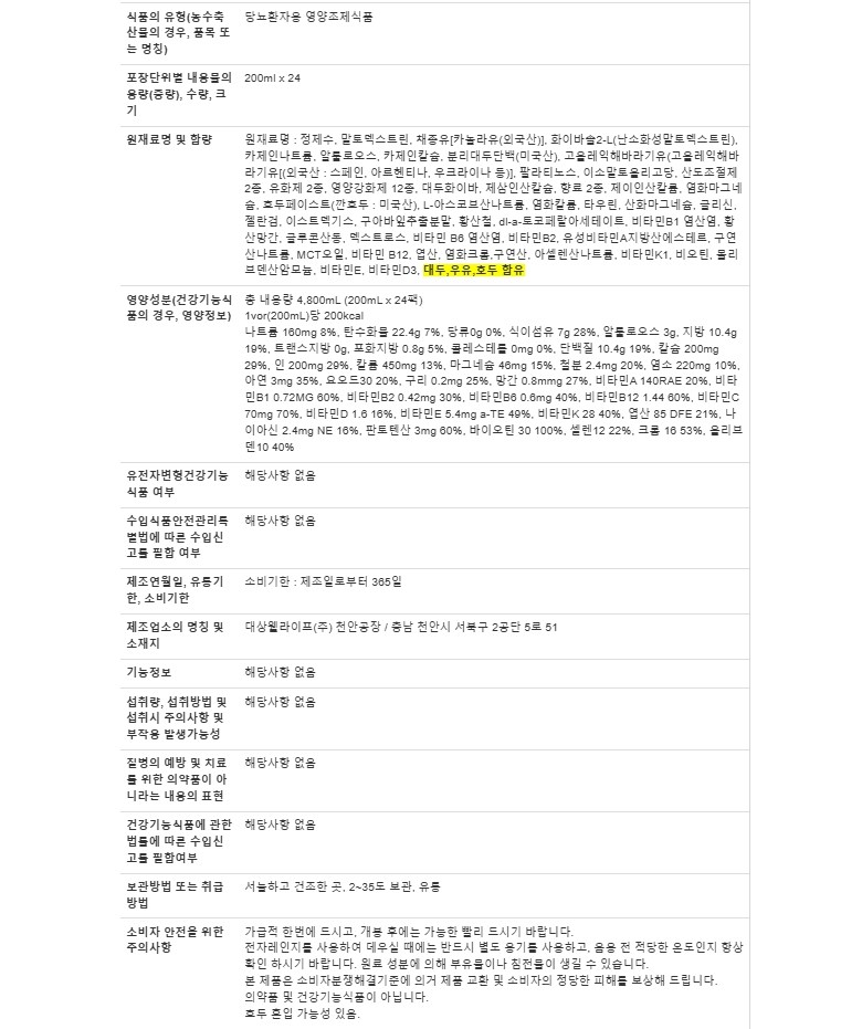 | 제품명 | 상품 상세페이지 참조 | 식품의 유형 | 상품 상세페이지 참조 |
