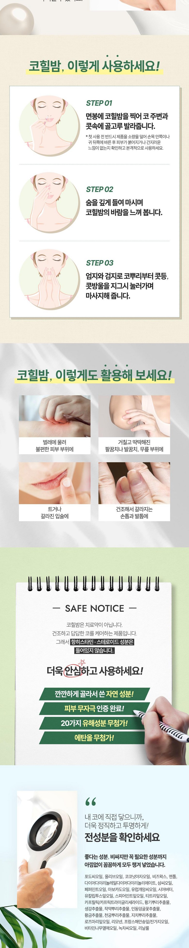 | 사용기한 또는 개봉 후 사용기간 | 2027.8.15 | 사용방법 | 적당량을 덜어 코 피부에 부드럽게 마사지하듯 펴 발라줍니다. |