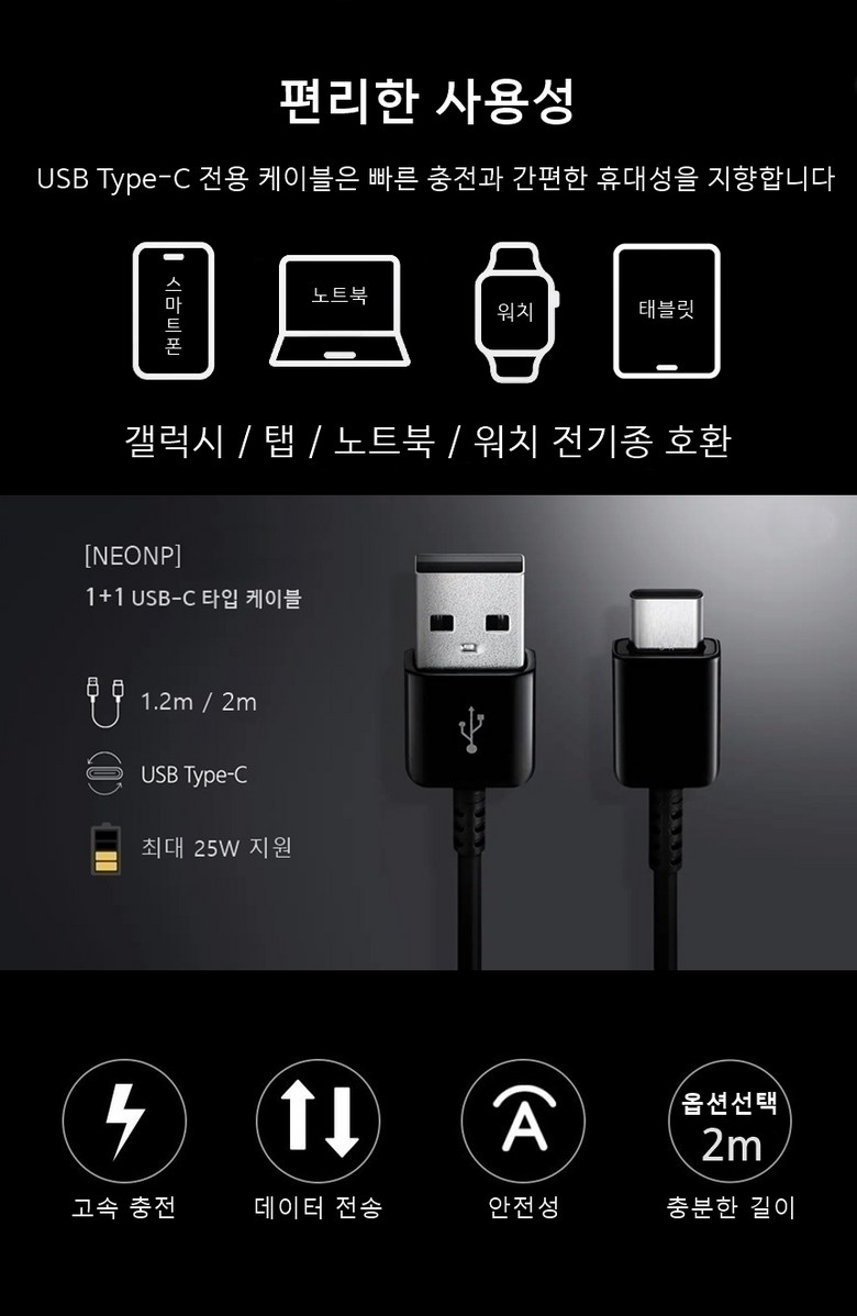 | 품명 및 모델명 | USB C타입 고속 충전 케이블 (NEONP-CA 15W) | 인증/허가 사항 | 해당사항없음 |