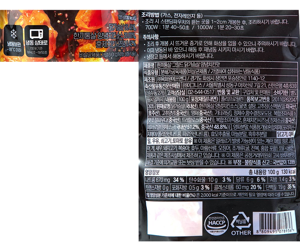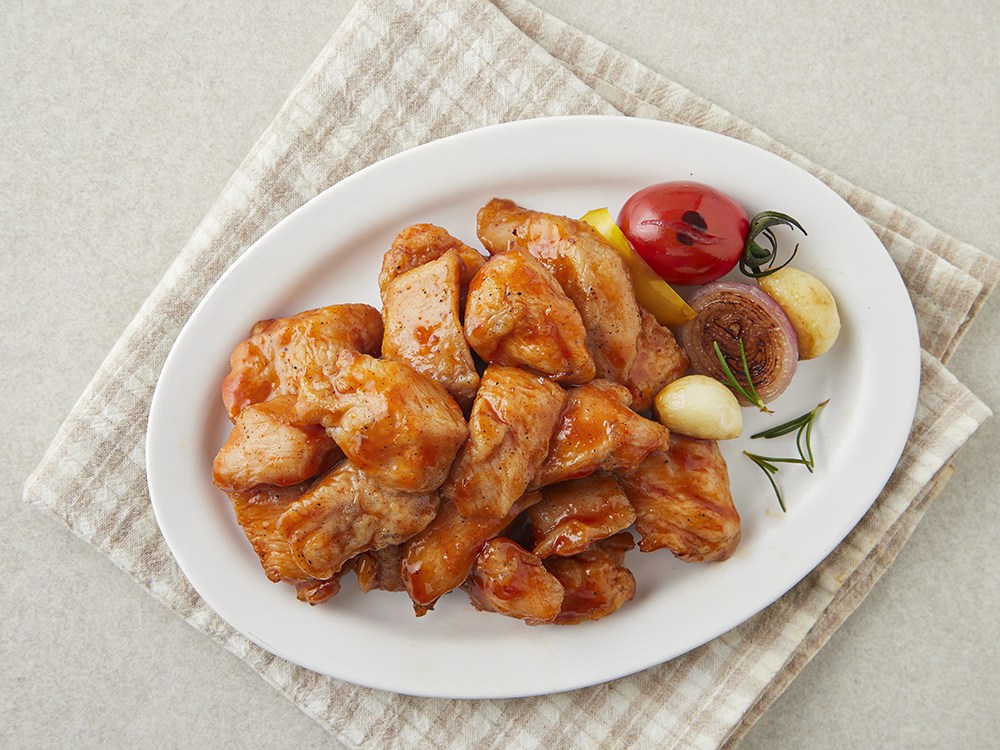 쏙 먹기 좋은 크기의 그릴드닭가슴살이에요. 양념치킨을 먹는 듯, 매콤달콤한 맛이 매력적이지요. 그대로 밥반찬으로 드셔도 좋고요. 채소와 함께 샐러드로 즐겨도 맛있답니다. 전자레인지로 간편하게 조리해 즐겨보세요.