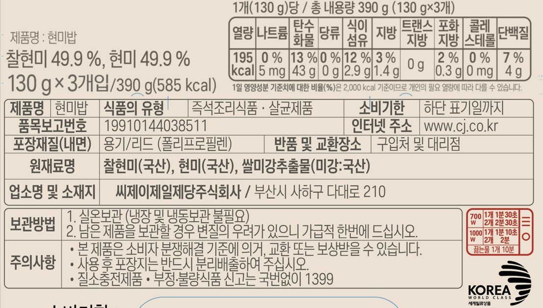 - 즉석밥 종류: 현미밥