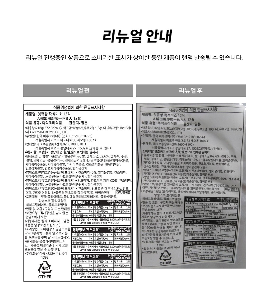 | 제품명 | 마루 잇큐상 12식 216g | 식품의 유형 | 즉석조리식품 |