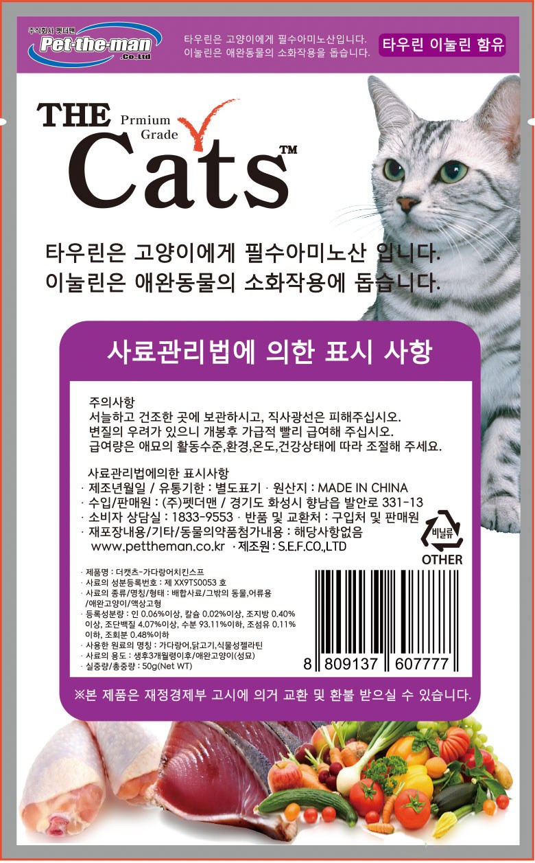 | 품명 및 모델명 | 더캣츠-가다랑어치킨스프 | 인증/허가 사항 | 사료관리법에 따른 성분등록번호 : 컨텐츠 참조 |