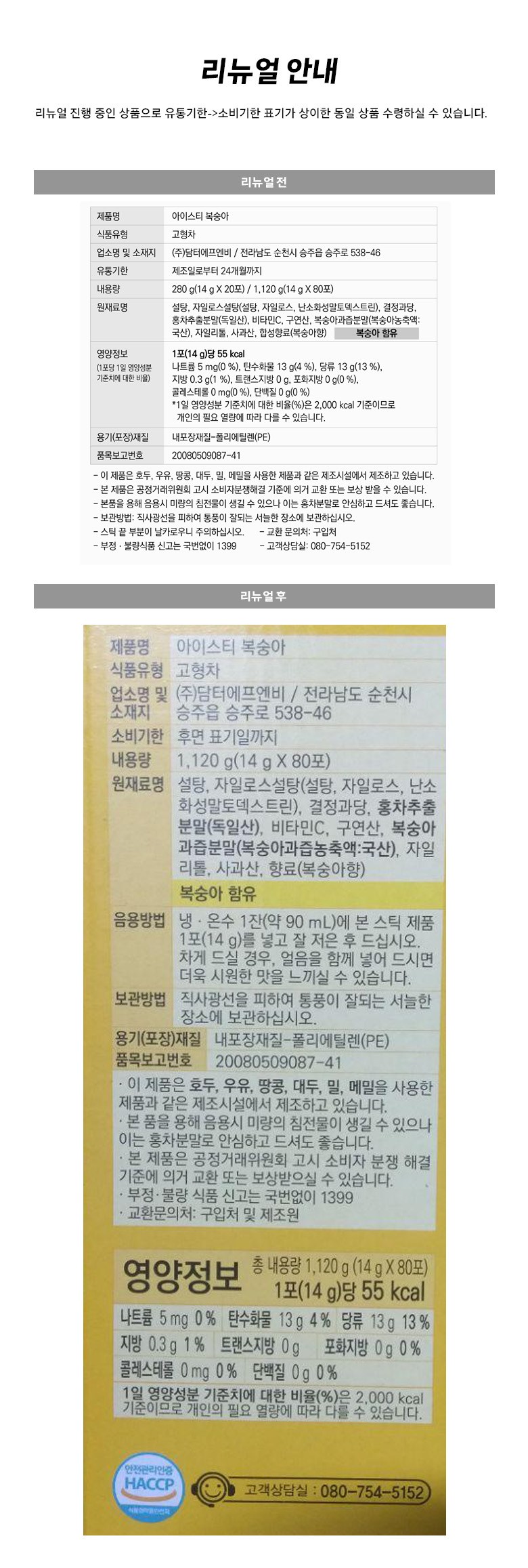 | 포장단위별 내용물의 용량(중량), 수량 | 컨텐츠 참조 | 원재료명 및 함량 | 컨텐츠 참조 |