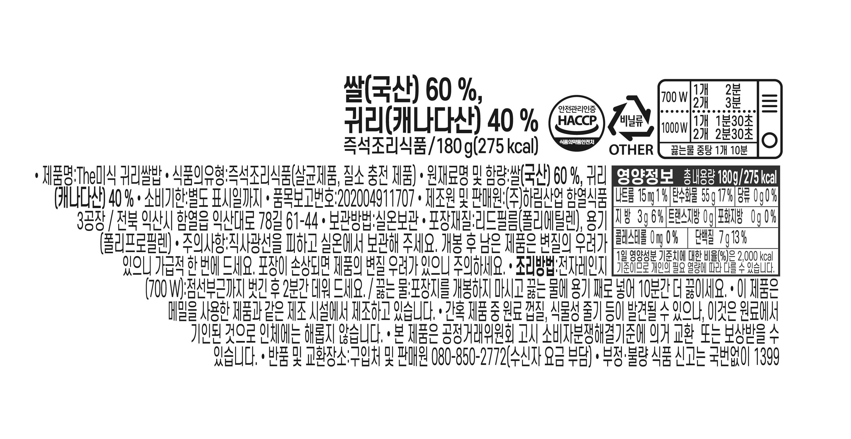 | 포장단위별 내용물의 용량(중량), 수량 | 180g x 6개 | 원재료명 및 함량 | 컨텐츠 참조 |