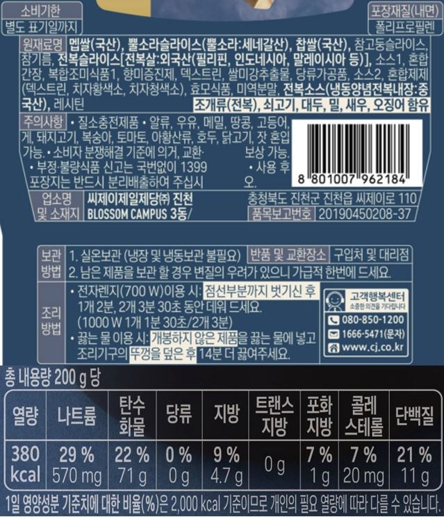 | 생산자 및 소재지 | 컨텐츠 참조 | 제조연월일, 소비기한 또는 품질유지기한 | 업데이트 예정 |