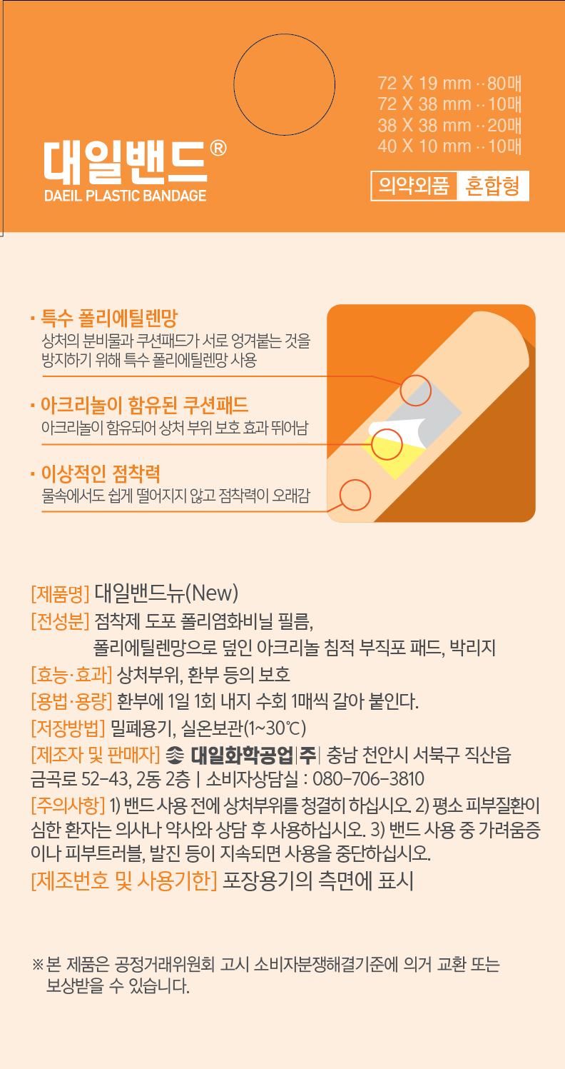 | 품명 및 모델명 | 대일밴드뉴(New) | 인증/허가 사항 | 의약외품 |