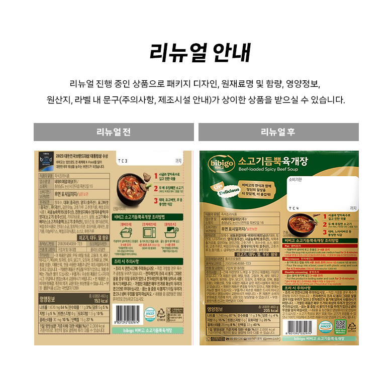 | 제품명 | bibigo 비비고 소고기듬뿍육개장 | 식품의 유형 | 컨텐츠 참조 |