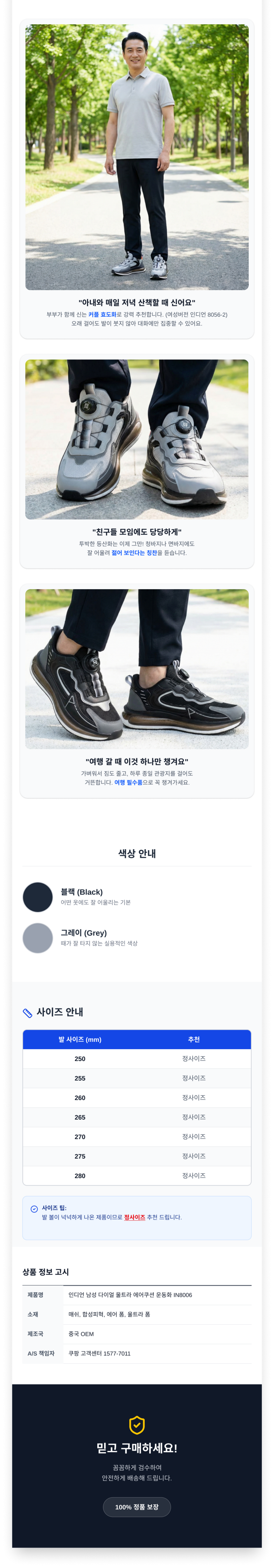 | 제품의 주소재(운동화인 경우에는 겉감,안감을 구분하여 표시) | 상품 상세페이지 참조 | 색상 | 상품 상세페이지 참조 |