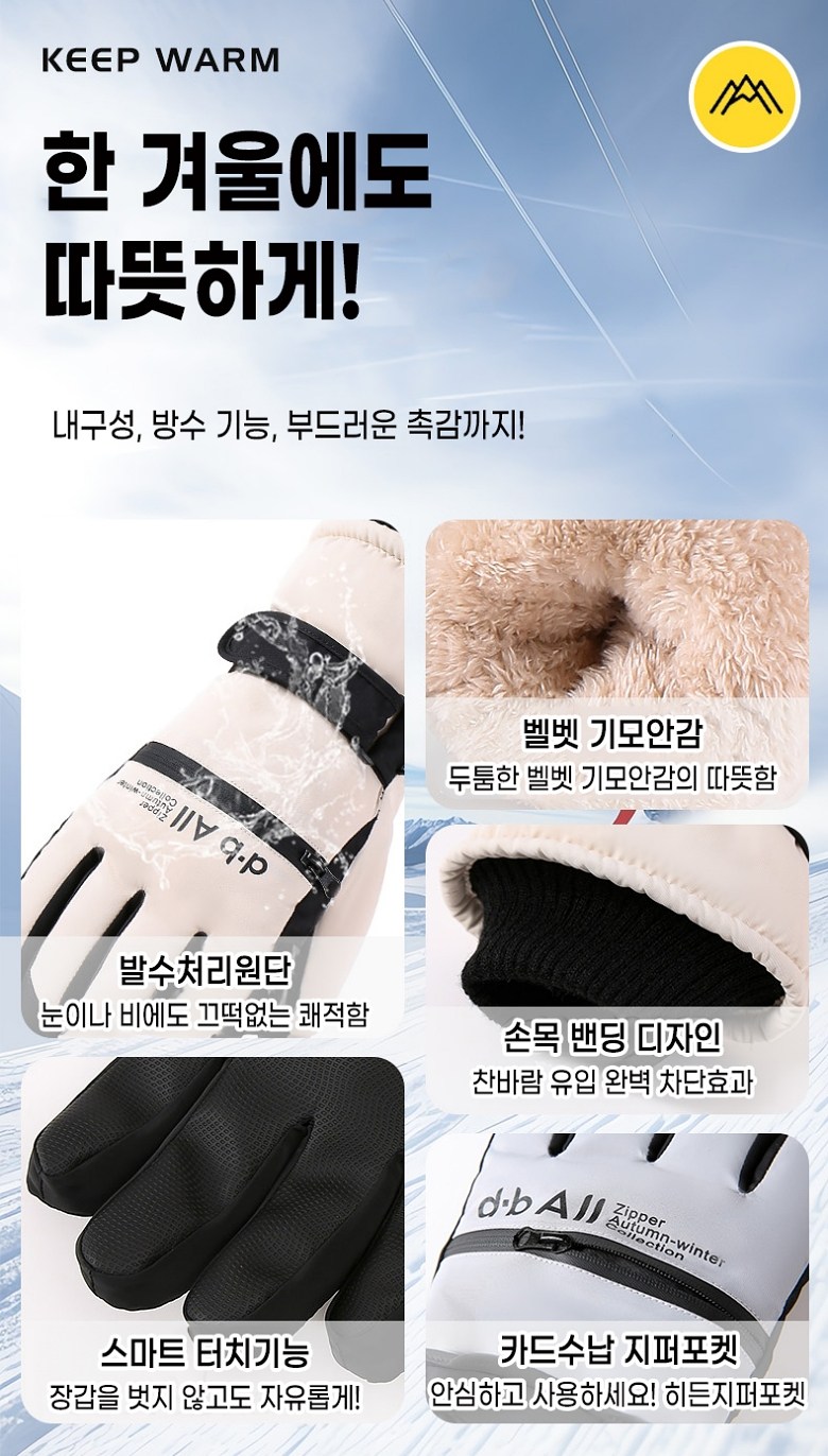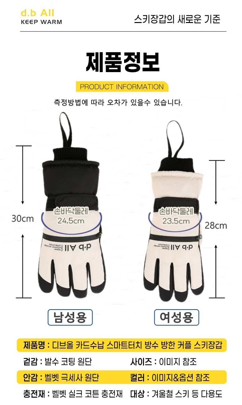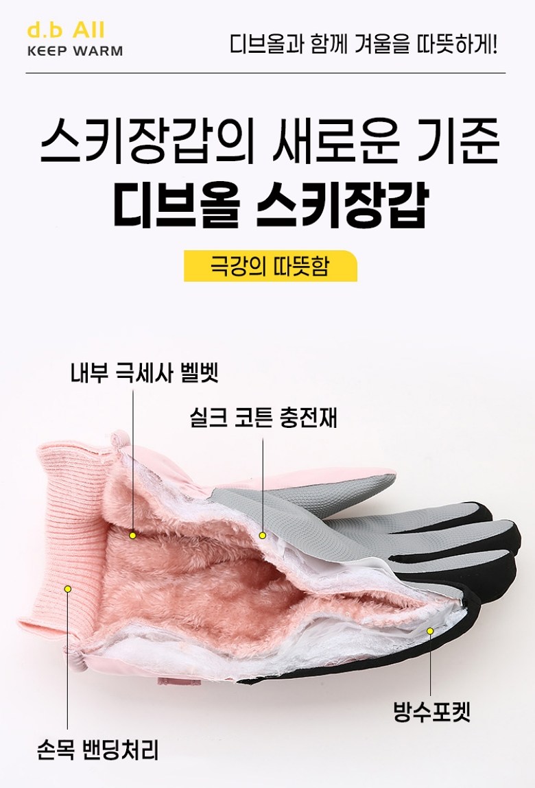 | 품명 및 모델명 | d.b All 디브올 카드수납 스마트터치 방수 방한 스키 보드 커플장갑 | 인증/허가 사항 | 인증대상 아님 |