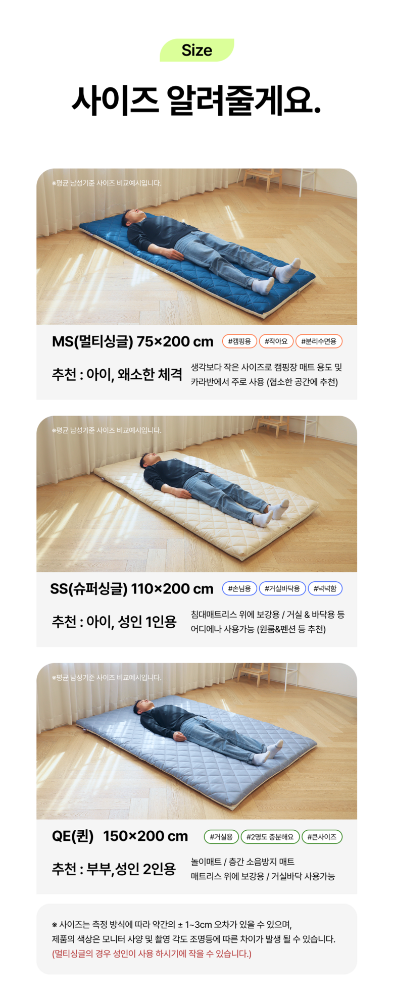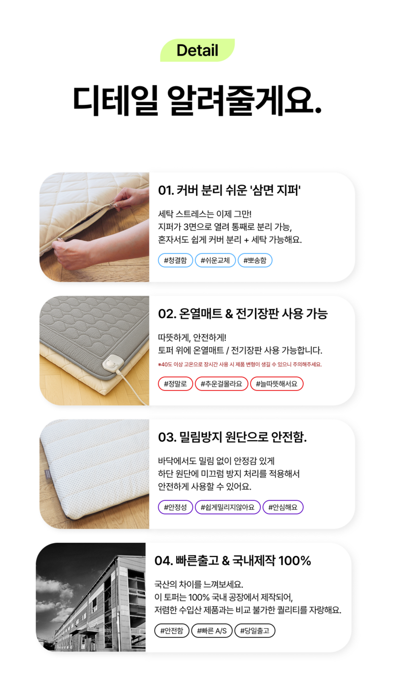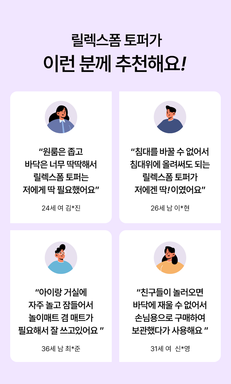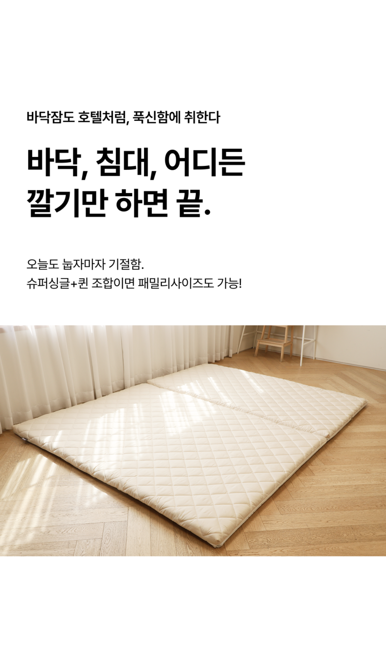 | 품명 | 꿀잠 릴렉스폼 토퍼매트리스 접이식 침대 바닥 수면매트 6cm | KC 인증정보 | 해당 없음 |