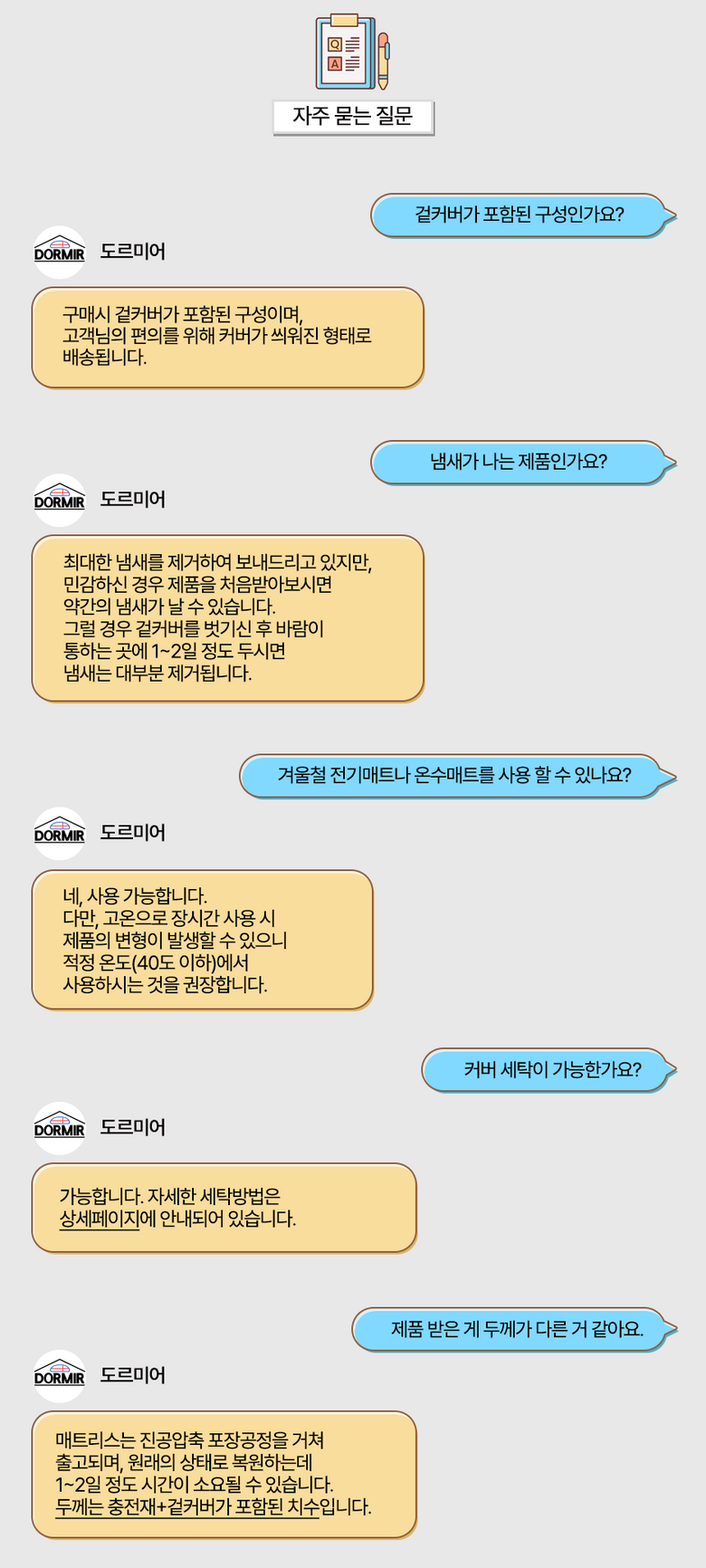 | 주요 소재 | 커버 : 폴리 100% / 충전재 : 우레탄폼 100% | 제조자(수입자) | 도르미어 |