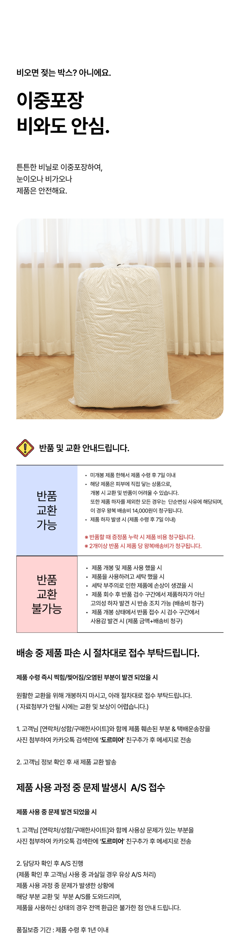 | 교환/반품 비용 (왕복비용) | 14,000원 - 단, 고객 변심의 경우에만 발생 - 도서산간 및 일부 지역 추가비용 발생 |