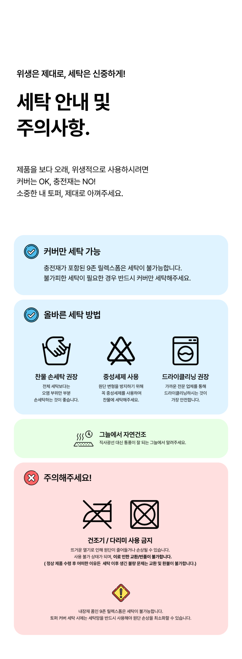 - ㆍ교환/반품에 관한 일반적인 사항은 판매자가 제시사항보다 관계법령이 우선합니다.