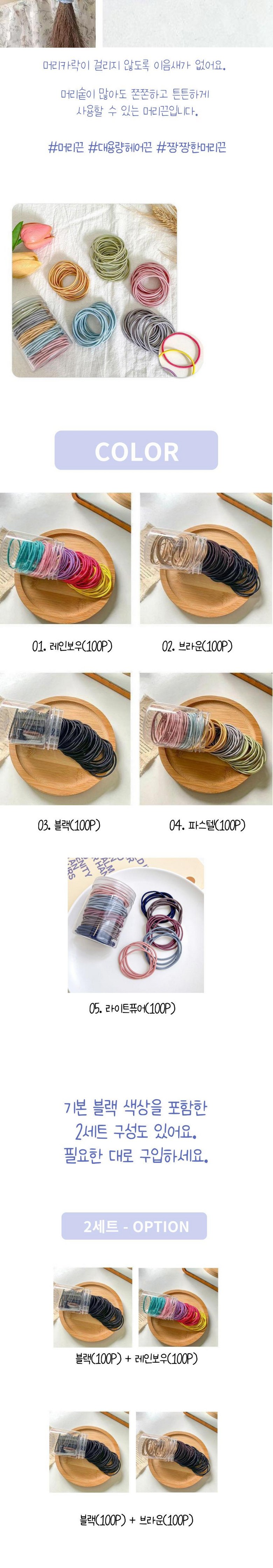 멜로우앤유 짱짱한 베이직 기본 머리 고무줄 대용량 머리끈 100P